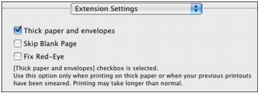 Print on Envelopes To print on envelopes, select the Extension Settings menu. Click the Thick paper and envelopes checkbox to turn on this feature. When you’re finished, you’re ready to print.