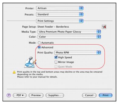 • Photo RPM: for the best print quality and slowest print speed