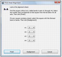 If no patterns meet the criteria, choose the closest one and click Realignment. Then print another alignment sheet and check it.