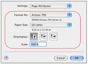 3. Select the Paper Size setting for the paper you loaded.If you want to print a borderless photo, select the paper size with a Borderless option.You can load paper in these sizes and select the size in the printer software. A Custom option is also available so you can create a custom size (in OS X 10.3.9, select Custom Paper Size from the Settings pop-up menu).Envelope #10 (4 1/8 × 9 1/2 inches)Half Letter (5 1/2 × 8 1/2 inches)