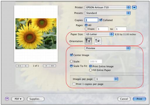 If you don’t see these settings here, check for them in your application before printing. For example, you may be able to open the File menu and select Page Setup.Note: