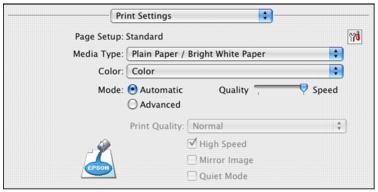 8. Select Color or Grayscale output in the Color pop-up menu. If you select Grayscale, some color ink will still be used for print head maintenance.