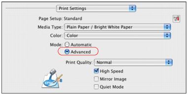After selecting the basic options on the Print window, you can click Advanced and select advanced options.
