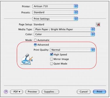 3. If desired, deselect High Speed to improve print quality (printing may be slower).