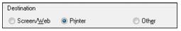 1. Select the way you plan to use your scanned image as the Destination. The Resolution setting is selected based on the Destination you choose.Screen/Web: For images you will e-mail, view on a computer screen, or post on the web.Printer: For images or documents you will print.Other: For images that you want to select a custom resolution for.