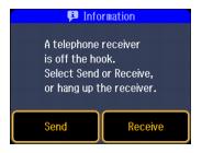 If you’ve connected a telephone to the Artisan 800 Series, you can use it to dial the fax number. After dialing the number from the phone, you see the screen below: