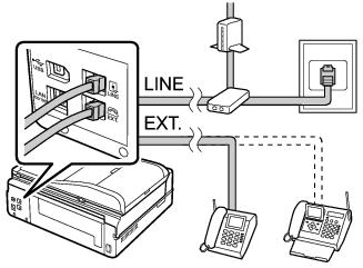 2. To use a telephone or answering machine, you need a second phone cable. Connect one end of the cable to the telephone or answering machine, and connect the other end to the EXT. port on the back of the Artisan 800 Series. You can also plug it into another wall jack on the same line, if there’s one available.If you’ve connected an answering machine, you may need to adjust the number of rings after which the Artisan 800 Series picks up.