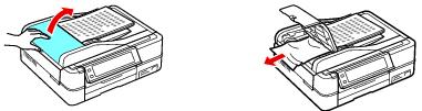 Do not try to remove the paper without opening the ADF cover first, or you could damage the mechanism. (The ADF cover is closed in both illustrations below.)