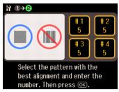 6. Check the alignment pattern that has printed. Find the pattern in each set that has the least visible vertical lines.Note: