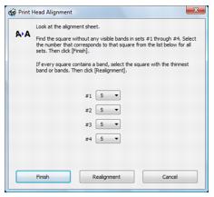 If no patterns are aligned, choose the closest one and click Realignment. Then print another alignment sheet and check it.