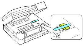 5. Lift up the scanner and check that the print head is all the way to the right (the home position). If necessary, turn on the Artisan 810 Series, then turn it off again. Leave the ink cartridges installed.