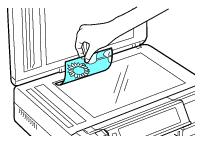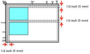If the edges of your photo are cut off, move the photo 1/4 inch (5 mm) away from the corner of the scanner glass. If you are using the Copy/Restore feature, you can copy two 4 × 6-inch photos; place them as shown below and at least 1/4 inch (5 mm) apart.