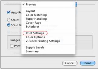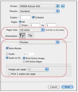 5. Select any settings that are specific to the application you’re using. For example, if you’re printing from Preview, you see the application settings shown above.