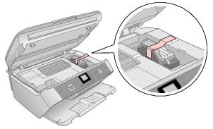After transporting the Epson Stylus CX7800, remove the tape securing the print head, plug in the Epson Stylus CX7800, and turn it on. If you notice a decline in print quality, clean the print head; if output is misaligned, align the print head.