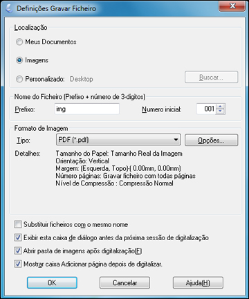 digitaliza o original e salva o arquivo PDF na pasta selecionada ou