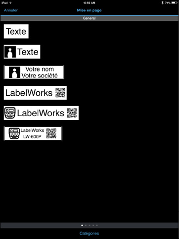 - Faites glisser la liste horizontalement pour voir les différentes catégories de mise en page.