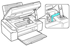 4. Lift up the scanner and check that the ink cartridge holder is all the way to the right (the home position). If necessary, turn on the Epson Stylus NX100 Series, then turn it off again.
