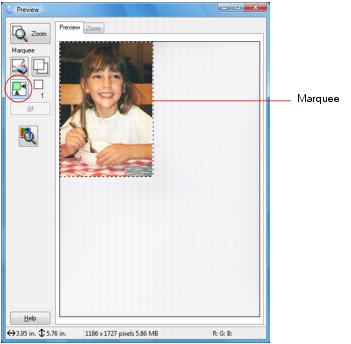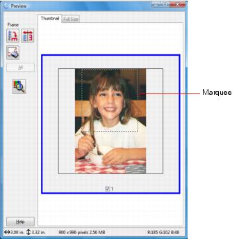 Thumbnail preview: Create a marquee by placing your cursor in one corner of the desired scan area, clicking, and dragging the cursor to the opposite corner.