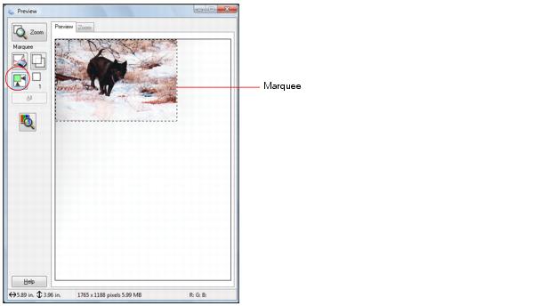 Thumbnail preview: Create a marquee by placing your cursor in one corner of the desired scan area, clicking, and dragging the cursor to the opposite corner.