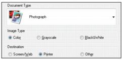2. Select the type of original you’re scanning as the Document Type, such as Photograph or Text/Line Art.
