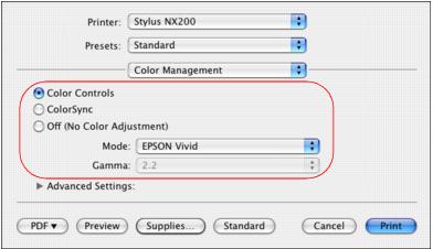 You can manage how colors are handled in your photos by selecting Color Management and ColorSync options from the Print window.