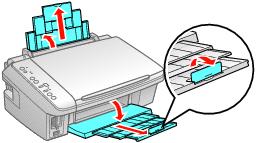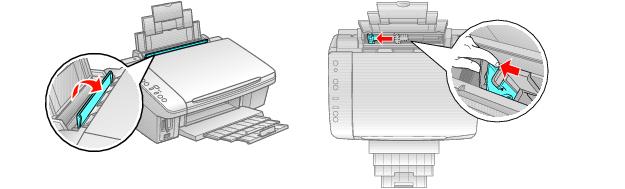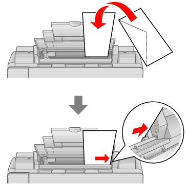 Load Envelopes You can print on plain paper or air mail envelopes in 4 1/8 × 9 1/2 inch (#10) size. 1. Open the paper support and pull up the extensions. 2. Open the output tray, pull out the extensions, and flip up the stopper. 3. Flip the feeder guard up, out of the way, then squeeze the edge guide and slide it left. 4. Load up to 10 envelopes against the right side and beneath the tab. Load them printable side up and flap edge left. Tip:Press each envelope flat before loading it or load one envelope at a time. 5. Slide the edge guide to the edge of the envelopes, but not too tightly. See also: Load Paper for Photos Load Paper for Documents