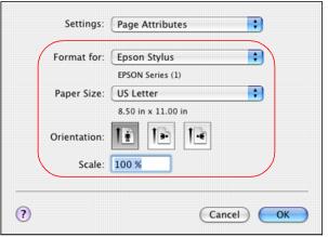 3. Select the Paper Size setting for the paper you loaded.If you want to print a borderless photo, select the paper size with a Sheet Feeder - Borderless option.You can load paper in these sizes and select the size in the printer software. A Custom option is also available so you can create a custom size (in OS X 10.3.9, select Custom Paper Size from the Settings pop-up menu).Envelope #10 (4 1/8 × 9 1/2 inches [105 × 241 mm])