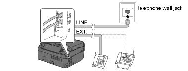 2. To use a telephone or answering machine, you need a second phone cable. Connect one end of the cable to the telephone or answering machine, and connect the other end to the EXT. port on the back of the NX300/305 Series.Note:
