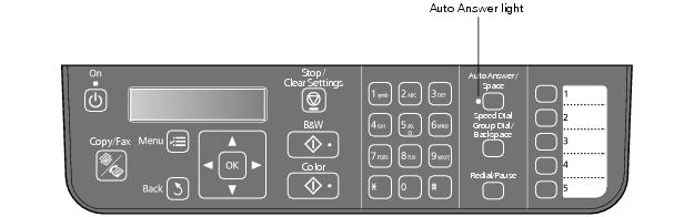 To change the answer mode, press the Auto Answer/Space button. The light stays on when Auto Answer mode is turned on. Press the button again to manually receive faxes.