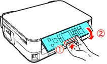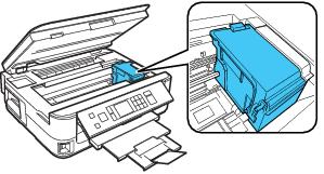4. Lift up the scanner and check that the ink cartridge holder is all the way to the right (the home position). If necessary, turn on the Epson Stylus NX620/625 Series, wait until the print head locks into the home position, then turn it off again.