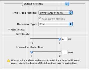 5. Adjust the print density and drying time to prevent ink from bleeding through the page when you print on plain paper.