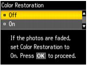 5. To turn on Color Restoration to restore colors in faded photos as you copy, pressor