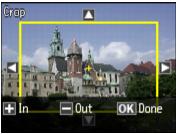 11. To crop a photo and enlarge the resulting image area to fit onto your paper, press Display/Crop. After you finish cropping your photo, press OK.