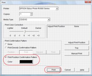 5. Click Print to print the confirmation pattern on the check disc.