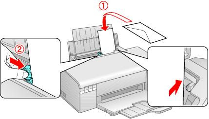 Load Envelopes You can print on plain paper envelopes in 4 1/8 × 9 1/2 inch (#10) size. 1. Open the paper support. 2. Open the output tray and pull out the extensions. 3. Press in the tab on the edge guide and slide it left. 4. Load up to 10 envelopes against the right side. Load them printable side up and flap edge left. Tip:Press each envelope flat before loading it or load one envelope at a time. 5. Slide the edge guide to the edge of the envelopes, but not too tightly. See also: Load Paper for Photos Load Paper for Documents