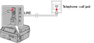 1. Connect the phone cable from the wall jack to the LINE port on the back of the WorkForce 310 Series.Note: