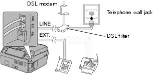 If you’re connecting the WorkForce 310 Series to a DSL phone line, you must plug a DSL filter into the wall jack or you won’t be able to use the fax or telephone equipment as described below. Contact your DSL provider for the necessary filter.