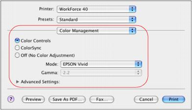 You can manage how colors are handled in your photos by selecting Color Management and ColorSync options from the Print window.