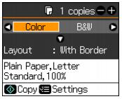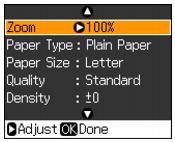 8. To change any of the print settings displayed on the screen, press Menu and select your settings.
