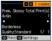 12. To change any of the print settings displayed on the screen, press Menu and select your settings.