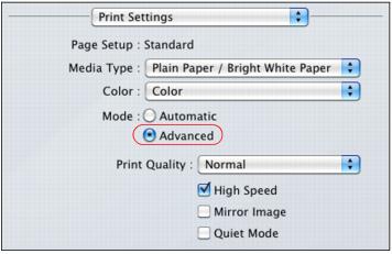 After selecting the basic options on the Print window, you can click Advanced and select advanced options.