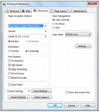Click the Advanced tab on the top of the printer settings window to select Advanced options.
