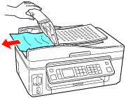 Paper Jams in the Automatic Document Feeder If you’re loading legal-size paper, insert only 10 sheets at a time to prevent paper feeding problems. If paper jams inside the ADF, clear the jam and reload the paper as follows: 1. Open the ADF cover and remove any jammed paper. Caution:Do not try to remove the paper without opening the ADF cover first, or you could damage the mechanism. 2. Press OK, then select Yes and press OK to clear any messages on the display screen. 3. Reload the paper. Make sure the corners of the paper are not bent, folded, or curled up.