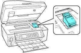 5. Lift up the scanner and check that the ink cartridge holder is all the way to the right (the home position). If necessary, turn on the WorkForce 600 Series, then turn it off again.