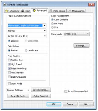 Click the Advanced tab on the top of the printer settings window to select Advanced options.