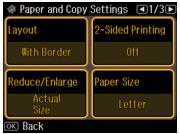 7. To change other print settings, press, then select Paper and Copy Settings.