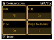 This feature can be used with a “Distinctive Ring Service” provided by your phone company. With this service, you can have two or more phone numbers assigned to the same line, with each number given a distinctive ring. For example, if you have a phone number for personal calls that’s set to ring normally (with a single ring) and a fax number set for a double ring, select Double as the DRD setting. Then the fax system picks up only those calls with a double ring.