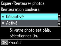 l'image de la copie, sélectionnez Ajustements photo, appuyez sur le bouton