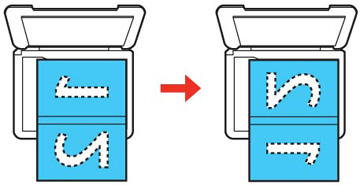 avec le bord supérieur de l'original orienté vers le coin indiqué.