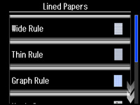 You can print wide-rule or narrow-rule notebook paper and graph paper.